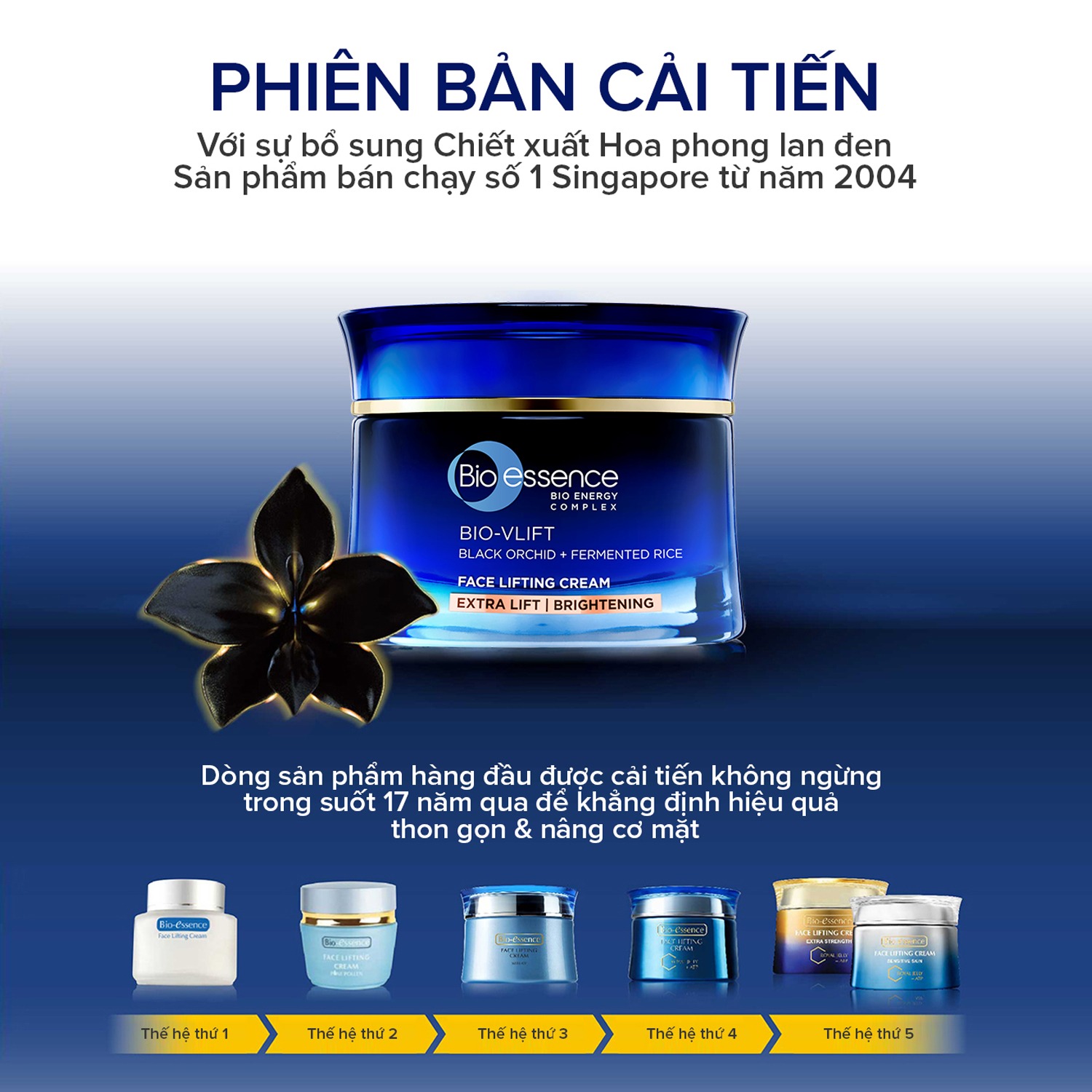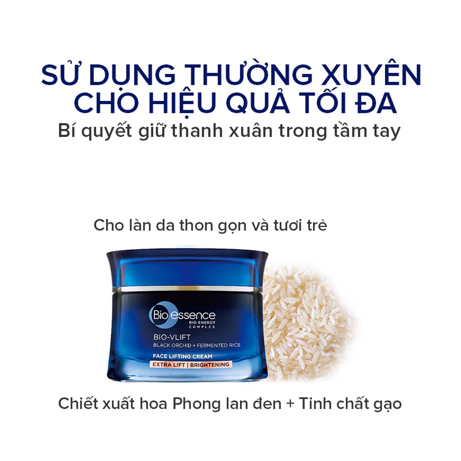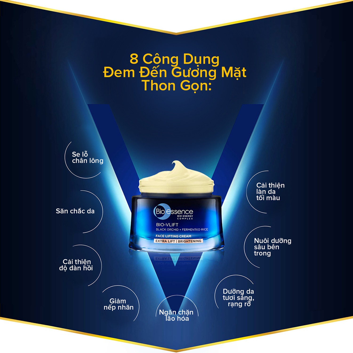 Kem Dưỡng Da Và Nâng Cơ Mặt Bio-Vlift Chiết Xuất Hoa Phong Lan Đen & Tinh Chất Gạo ngăn ngừa làn da chảy xệ, giúp thon gọn và nâng cơ mặt.